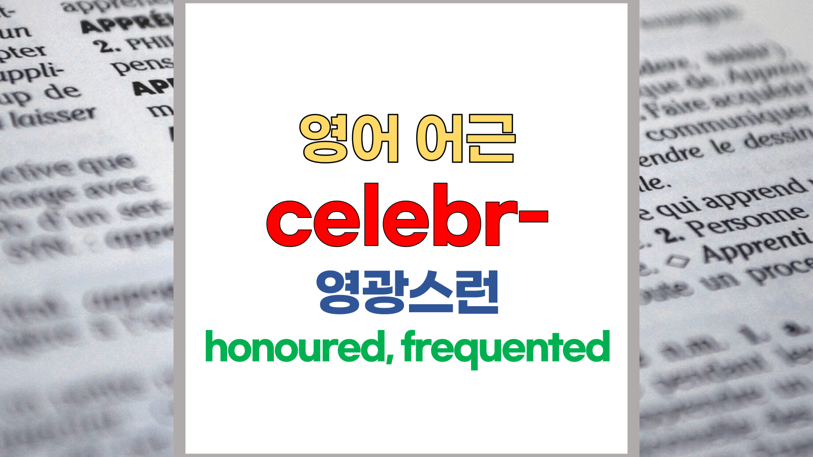 | 영어 어근 celebr는 라틴어(Latin) celebratus, celebrare, celeber에서 유래했습니다. 영광스런, honoured, frequented이라는 기본적인 의미를 갖고 있습니다. |