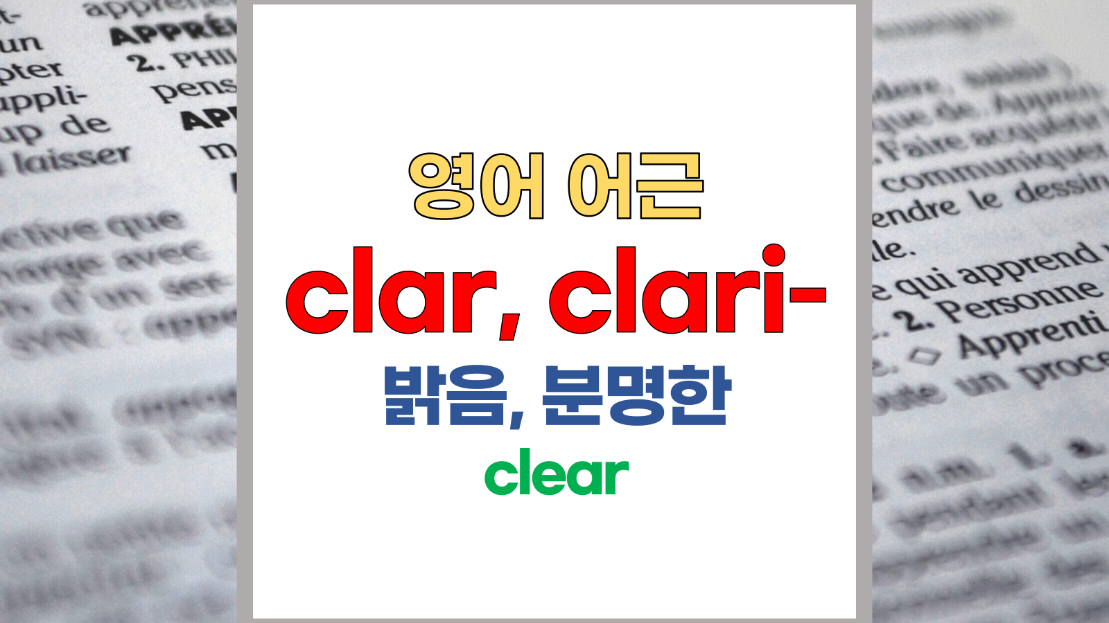 | 영어 어근 clar-, clari는 라틴어(Latin) clarus, clarare에서 유래했습니다. 밝음, 분명한, clear라는 기본적인 의미를 갖고 있습니다. |