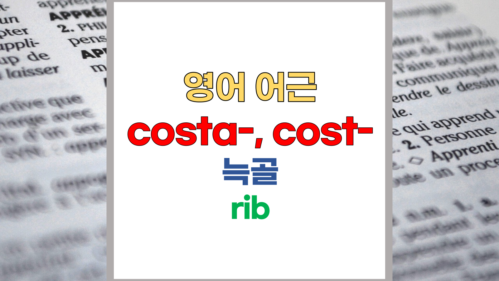 | 영어 어근 costa-, cost-는 라틴어(Latin) costa에서 유래했습니다. 늑골, rib이라는 기본적인 의미를 갖고 있습니다. |