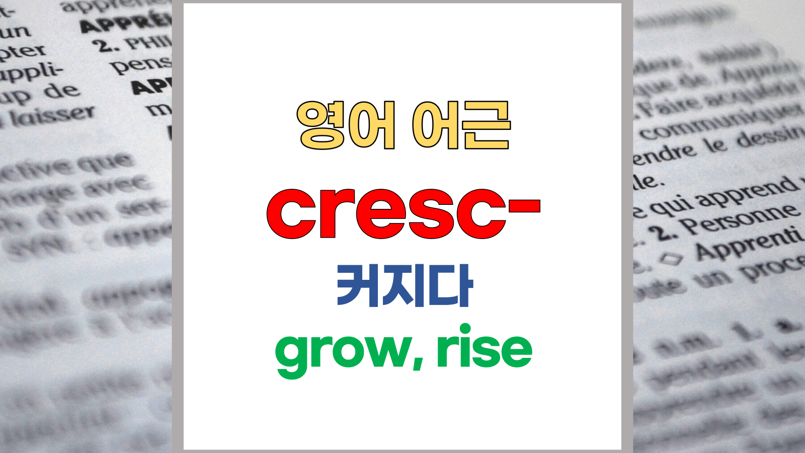 | 영어 어근 cresc는 라틴어(Latin) crescere, crescens에서 유래했습니다. 커지다, grow, rise라는 기본적인 의미를 갖고 있습니다. |