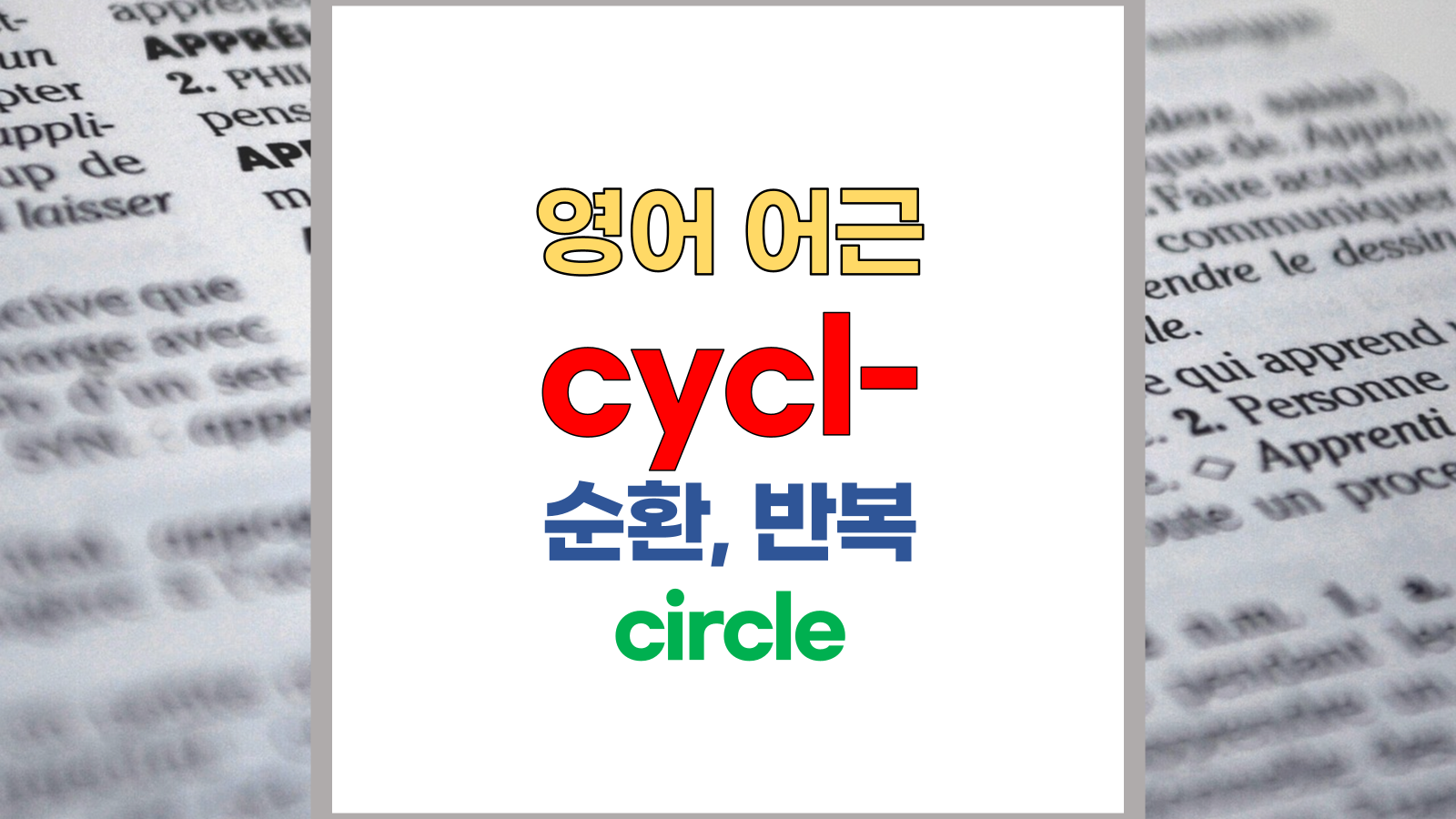 | 영어 어근 cycl-은 그리스어(Greek) kyklos, kuklos, kyklon, kuklikos에서 유래했습니다. 순환, 반복, circle이라는 기본적인 의미를 갖고 있습니다. |