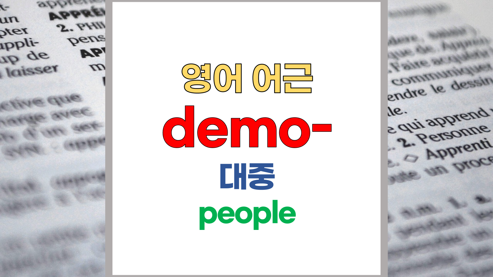 | 영어 어근 demo-는 그리스어(Greek) demos에서 유래했습니다. 대중, 무리, people이라는 기본적인 의미를 갖고 있습니다. |