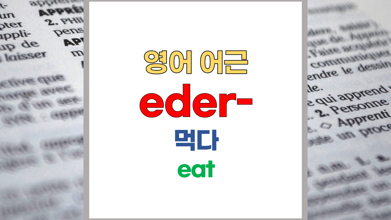 | 영어 어근 ed-, es-, eder-는 라틴어(Latin) edere, esus, edax에서 유래했습니다. 먹다, eat라는 기본적인 의미를 갖고 있습니다. |