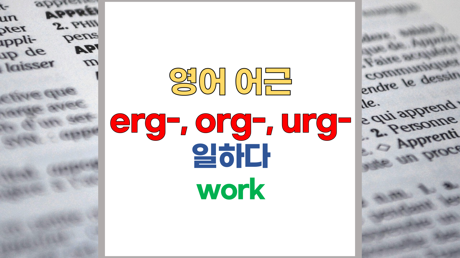 | 영어 어근 erg-, org-, urg-는 그리스어(Greek) wergon, ergon, ergates에서 유래했습니다. 일하다, 일, 작업, work라는 기본적인 의미를 갖고 있습니다. |
