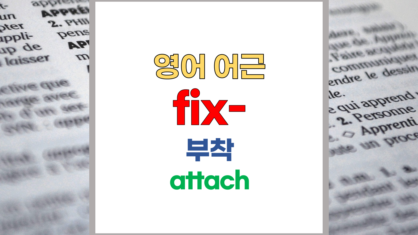 [어근] ⑴ fix; 부착, attach ⑵ ation(ion); 명사 어미