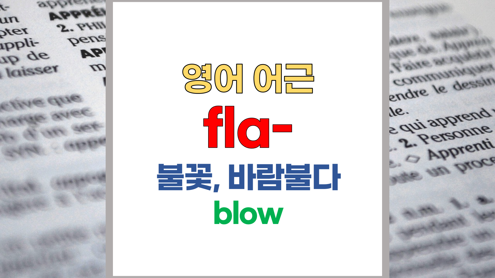 | 영어 어근 fla는 라틴어(Latin) flare, flatus에서 유래했습니다. 불꽃, 바람 불다, blow라는 기본적인 의미를 갖고 있습니다. |