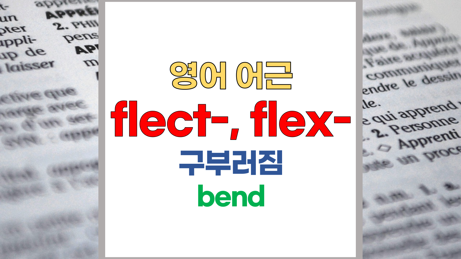 | 영어 어근 flect-, flex는 라틴어(Latin) flectere, flexus에서 유래했습니다. 구부러짐, bend라는 기본적인 의미를 갖고 있습니다. |