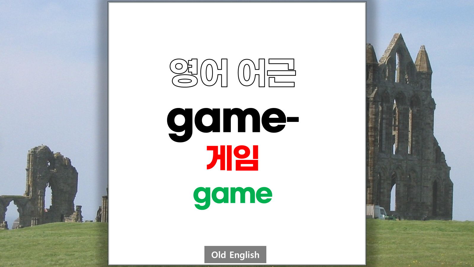 | 영어 어근 game은 고대 영어(Old English) gamen, gamenian에서 유래했습니다. 게임, game이라는 기본적인 의미를 갖고 있습니다. |
