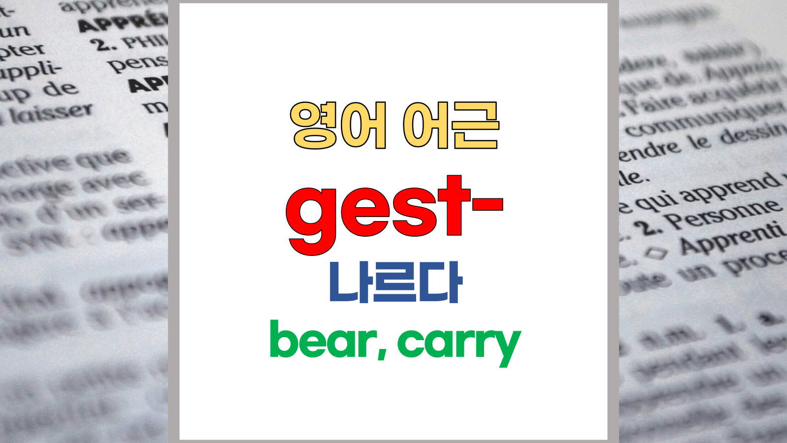 | 영어 어근 gest는 라틴어(Latin) gerere, gestus에서 유래했습니다. 나르다, carry, bear라는 기본적인 의미를 갖고 있습니다. |