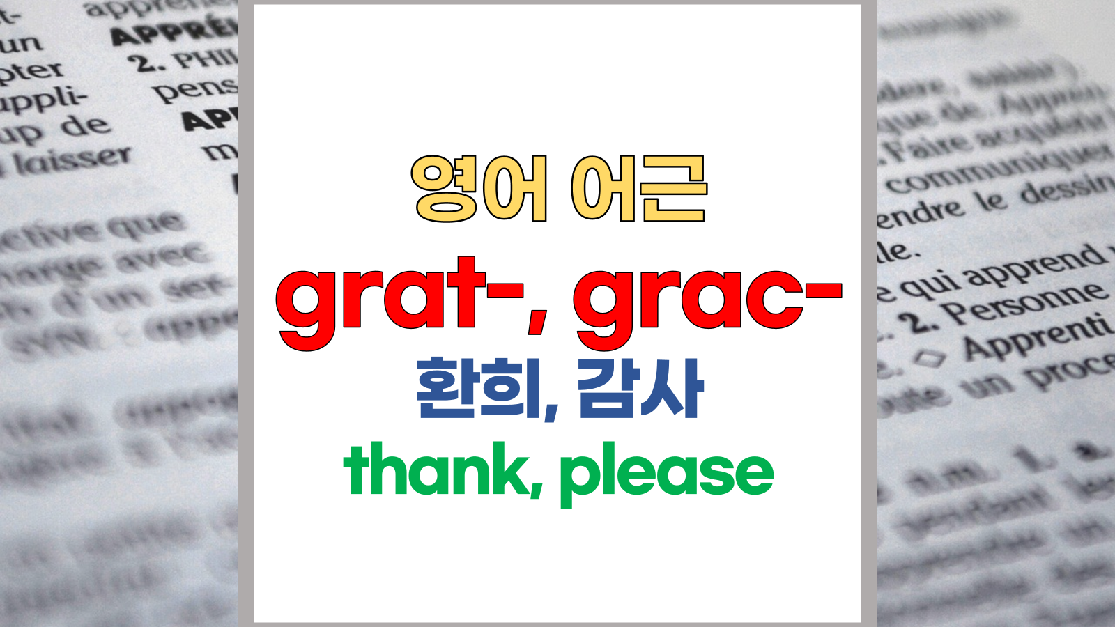 | 영어 어근 grat-, grace는 라틴어(Latin) gratus, gratia에서 유래했습니다. 환희, 감사, please, thank라는 기본적인 의미를 갖고 있습니다. |