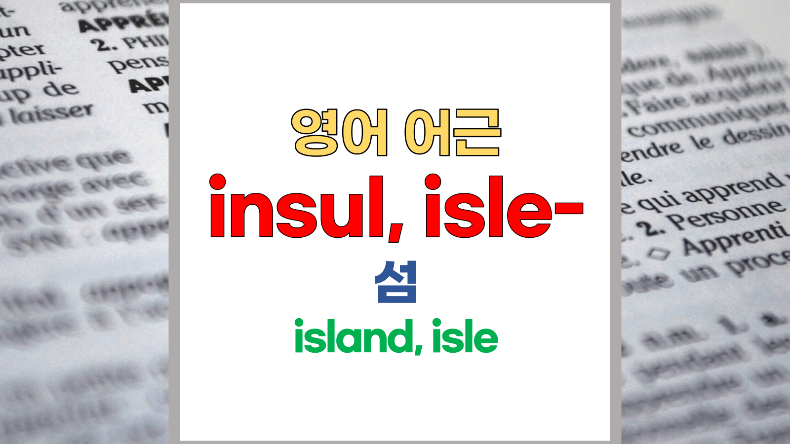 | 영어 어근 insul, isle은 라틴어(Latin) insula, insularis에서 유래했습니다. 섬, isle, island라는 기본적인 의미를 갖고 있습니다. |