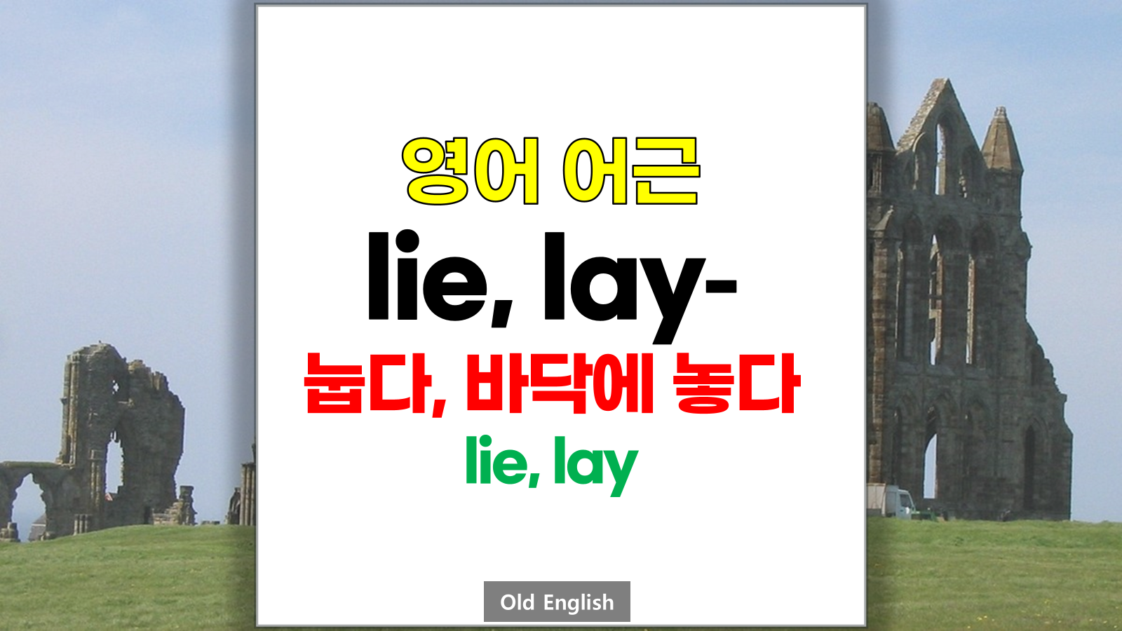 | 영어 어근 lie는 고대 영어(Old English) licgan, læg, legen에서 유래했습니다. 눕다, lie, lay라는 기본적인 의미를 갖고 있습니다. |