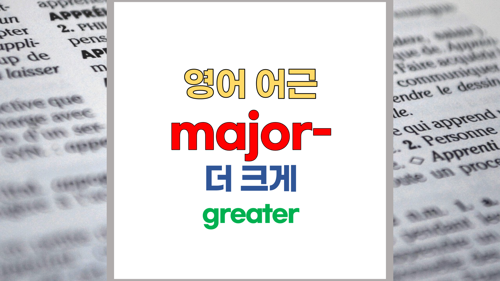 | 영어 어근 major는 라틴어(Latin) major, maior, majus에서 유래했습니다. 크게, greater라는 기본적인 의미를 갖고 있습니다. |