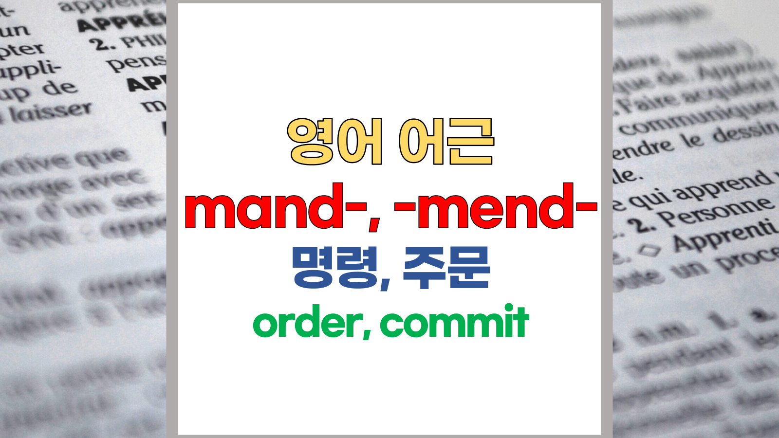 | 영어 어근 mand-, -mend-는 라틴어(Latin) mandare, mandatus에서 유래했습니다. 명령, 명하다, commit, order, entrust라는 기본적인 의미를 갖고 있습니다. |