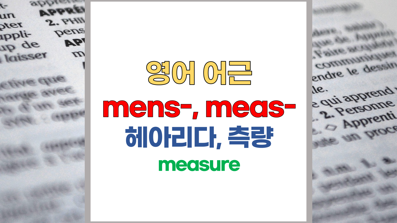 | 영어 어근 mens-, meas-는 라틴어(Latin) mensus, metiri, mensura에서 유래했습니다. 측량, 계량하다, measure라는 기본적인 의미를 갖고 있습니다. |