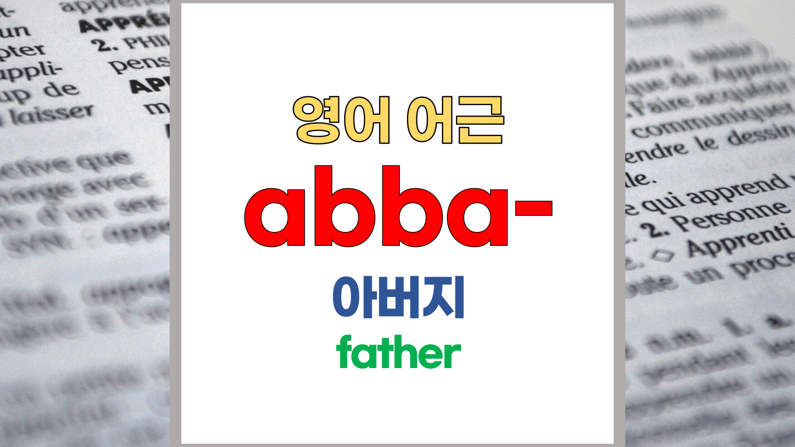 | 영어 어근 abba-는 라틴어(Latin) abbas, abbatia에서 유래했습니다. '아버지(father)', 'father'라는 기본적인 의미를 갖고 있습니다. |