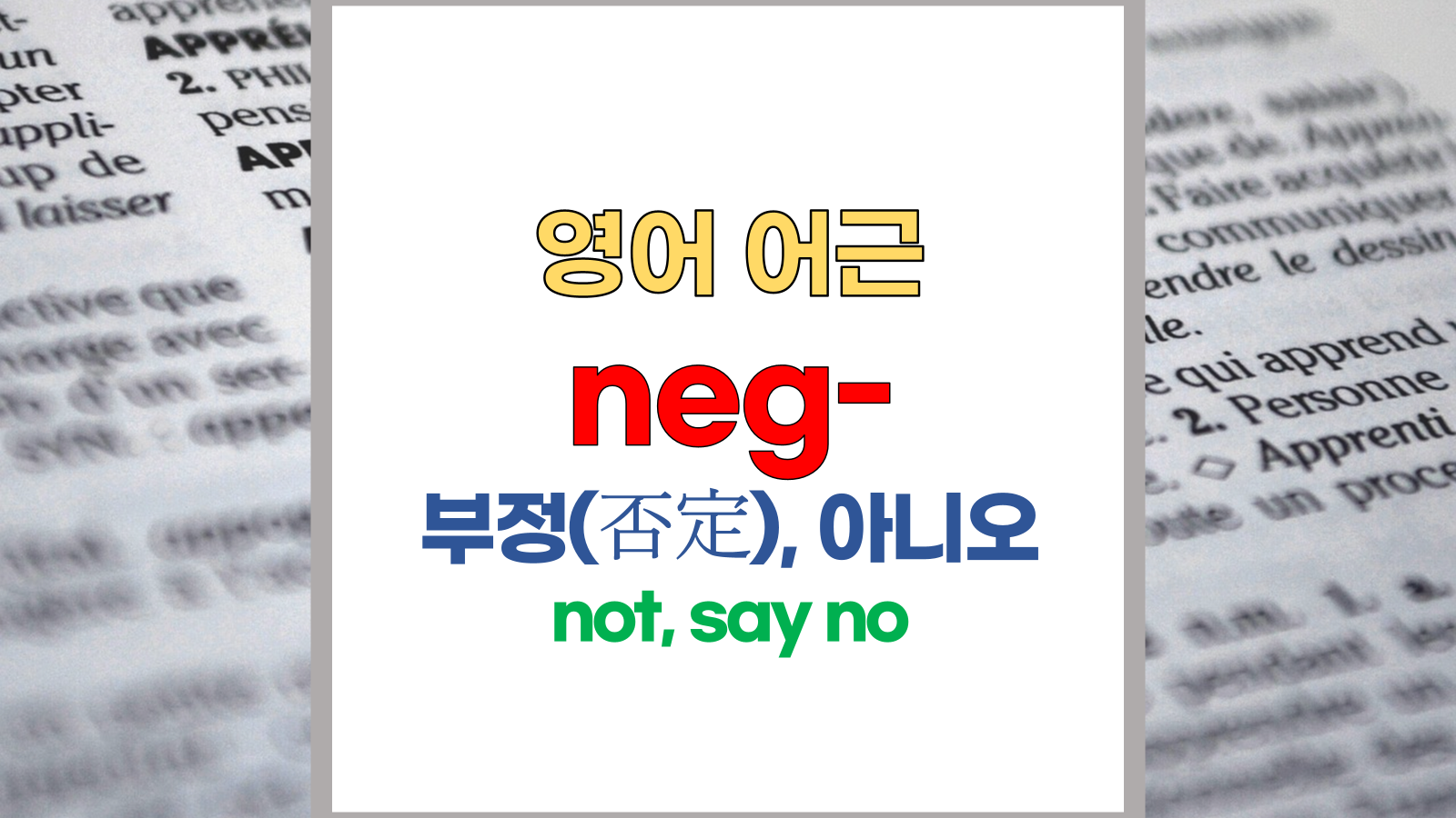 | 영어 어근 neg는 라틴어(Latin) negare, nec, ne-, ne, neg-에서 유래했습니다. 부정(否定), not, say no라는 기본적인 의미를 갖고 있습니다. |