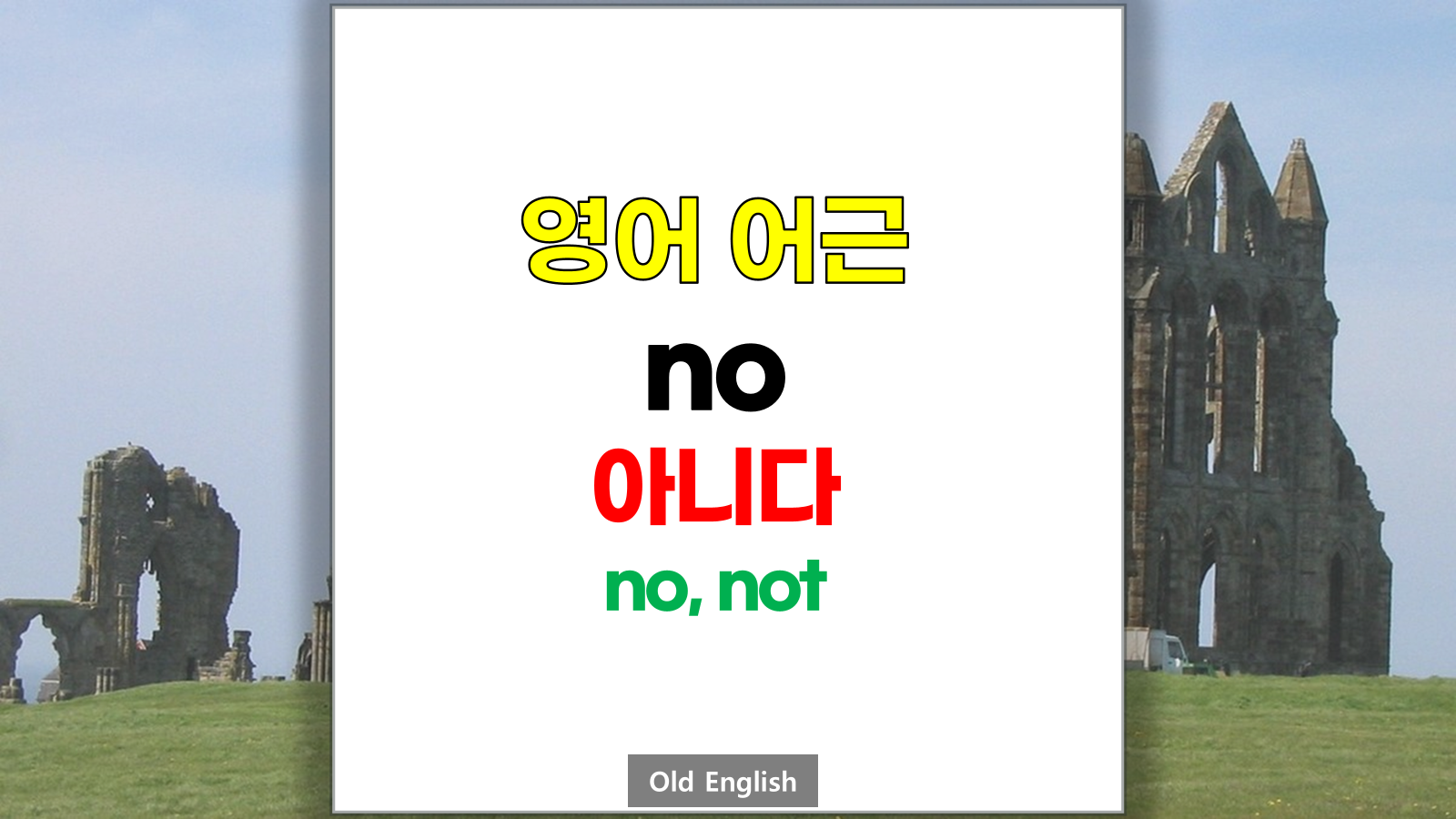 | 영어 어근 no는 고대 영어(Old English) na, ne, non, nan에서 유래했습니다. 아님, no, not이라는 기본적인 의미를 갖고 있습니다. |