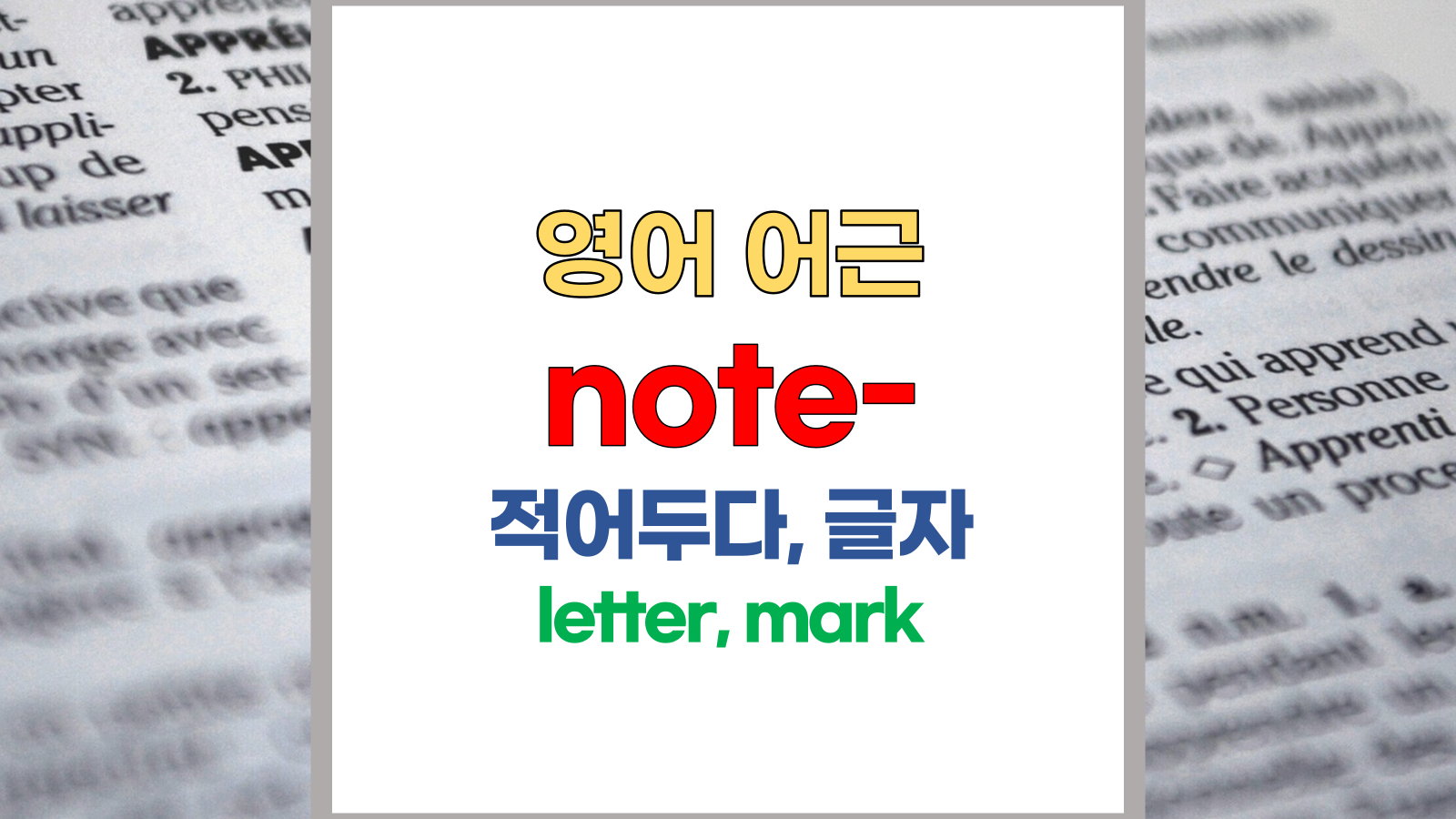 | 영어 어근 note-, not-는 라틴어(Latin) notare, notus, notorius에서 유래했습니다. 글자, 표시, mark, letter, note라는 기본적인 의미를 갖고 있습니다. |