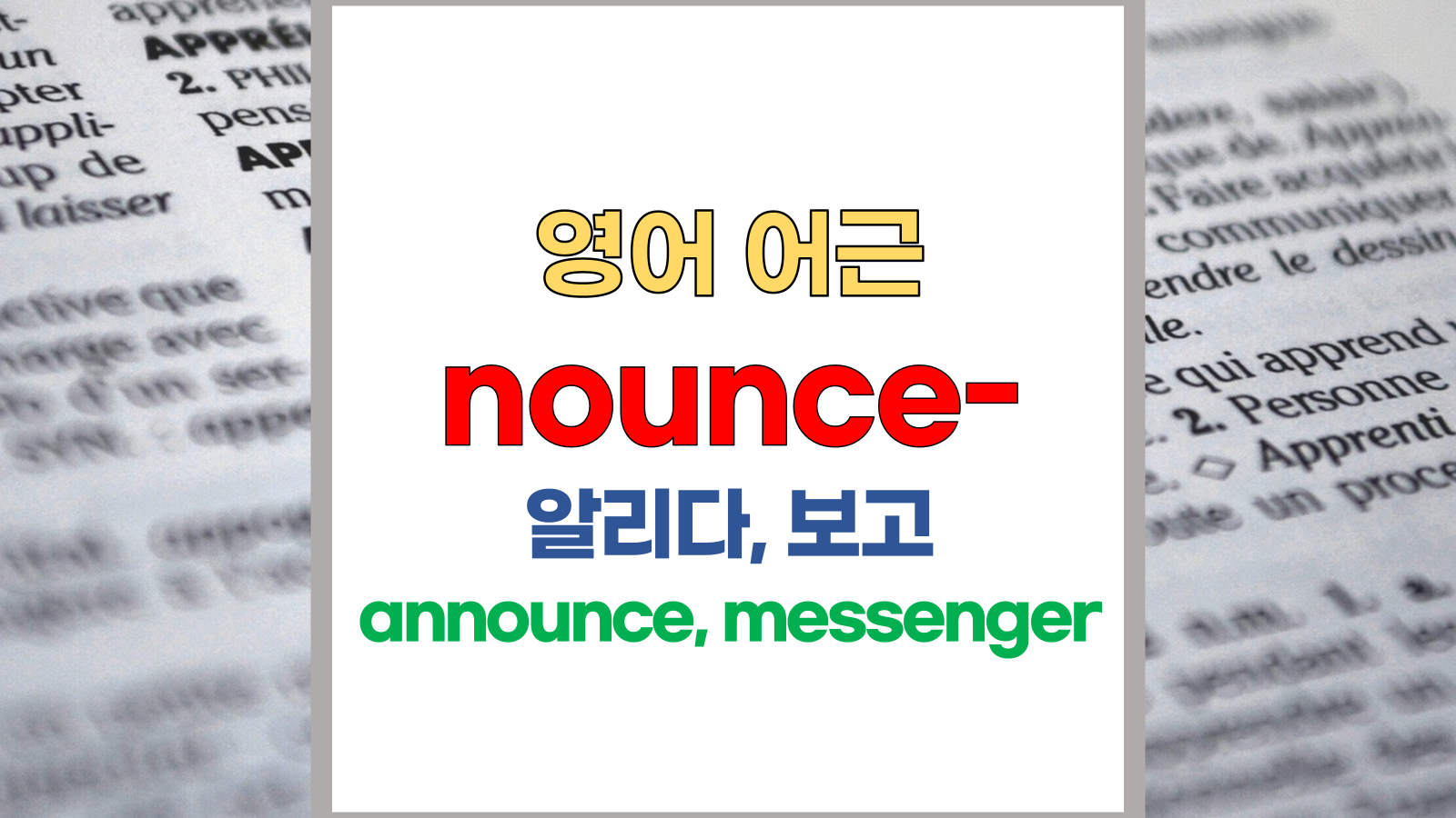 | 영어 어근 nunci-, nounc-는 라틴어(Latin) nuntiare, nuntius에서 유래했습니다. 보고, 보고하다, announce라는 기본적인 의미를 갖고 있습니다. |