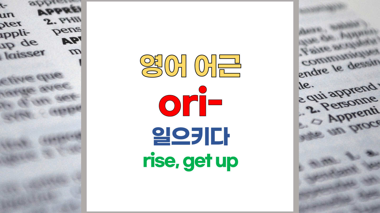 | 영어 어근 ori-, ort-는 라틴어(Latin) oriri, oriens, orient, origo에서 유래했습니다. 일으키다, 떠오르다, 시작, rise, get up, appear라는 기본적인 의미를 갖고 있습니다. |