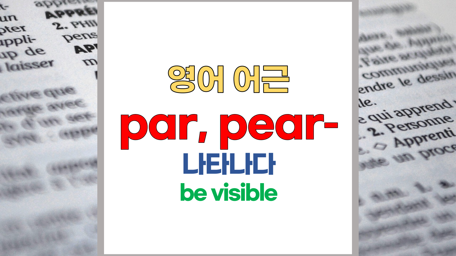 | 영어 어근 par는 라틴어(Latin) parere에서 유래했습니다. 나타나다, visible, be visible이라는 기본적인 의미를 갖고 있습니다. |