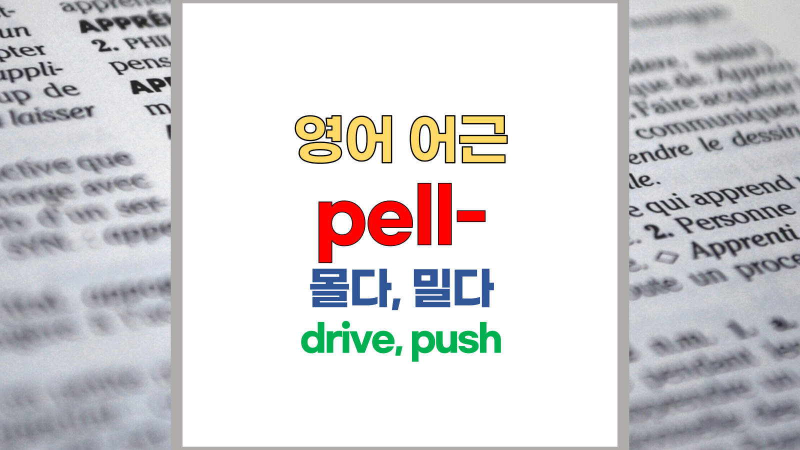 | 영어 어근 pell-, puls-는 라틴어(Latin) pellere, pulsus에서 유래했습니다. 몰다, 밀다, drive, push라는 기본적인 의미를 갖고 있습니다. |