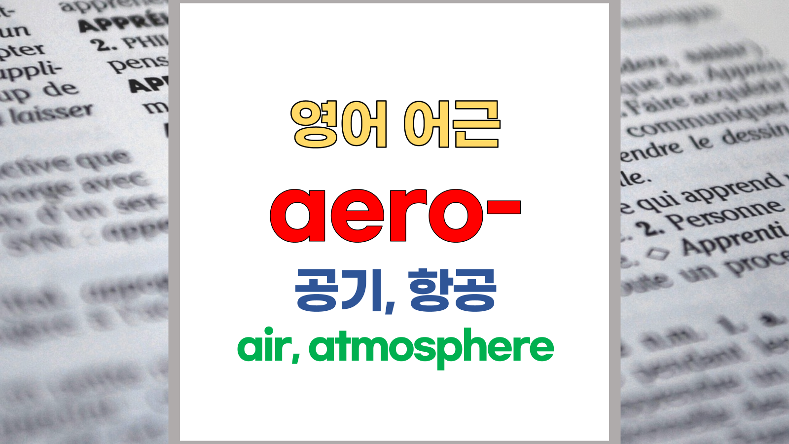 [어근] ⑴ aero; 공기 ⑵ bio; 생명 ⑶ logy(log); study of, 학문