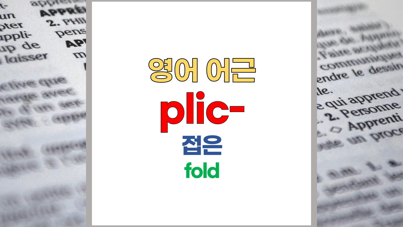| 영어 어근 plic는 라틴어(Latin) plicare, plicatus에서 유래했습니다. 접은, 접힌, 겹친, 포함, fold라는 기본적인 의미를 갖고 있습니다. |