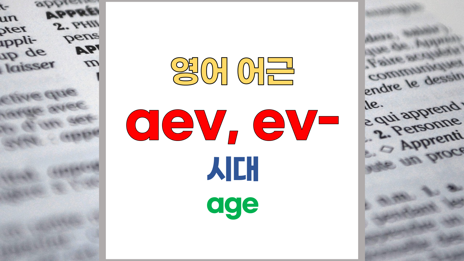 | 영어 어근 aev는 라틴어(Latin) aetaticum, aetatem, aetas, aevum, aeon에서 유래했습니다. '시대', 'age'라는 기본적인 의미를 갖고 있습니다. |