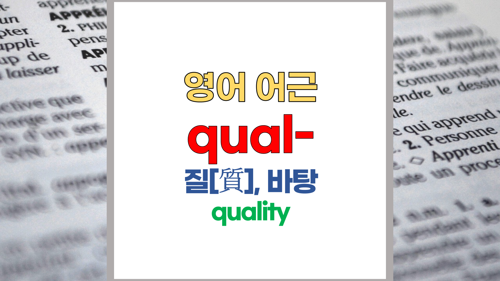 | 영어 어근 qual은 라틴어(Latin) qualis에서 유래했습니다. 질[質], 바탕, quality라는 기본적인 의미를 갖고 있습니다. |