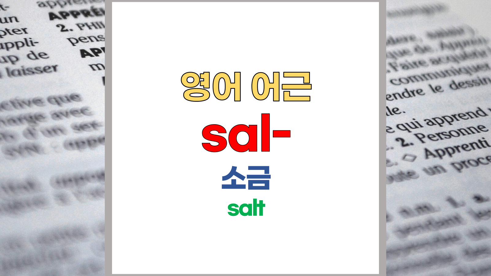 | 영어 어근 sal은 라틴어(Latin) sal, salis, salere, salsa, sallere, salsus에서 유래했습니다. 소금, salt라는 기본적인 의미를 갖고 있습니다. |