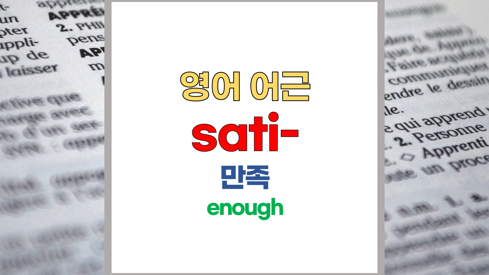 | 영어 어근 sati는 라틴어(Latin) satis, satiare, satiatus, satur에서 유래했습니다. 만족, enough라는 기본적인 의미를 갖고 있습니다. |