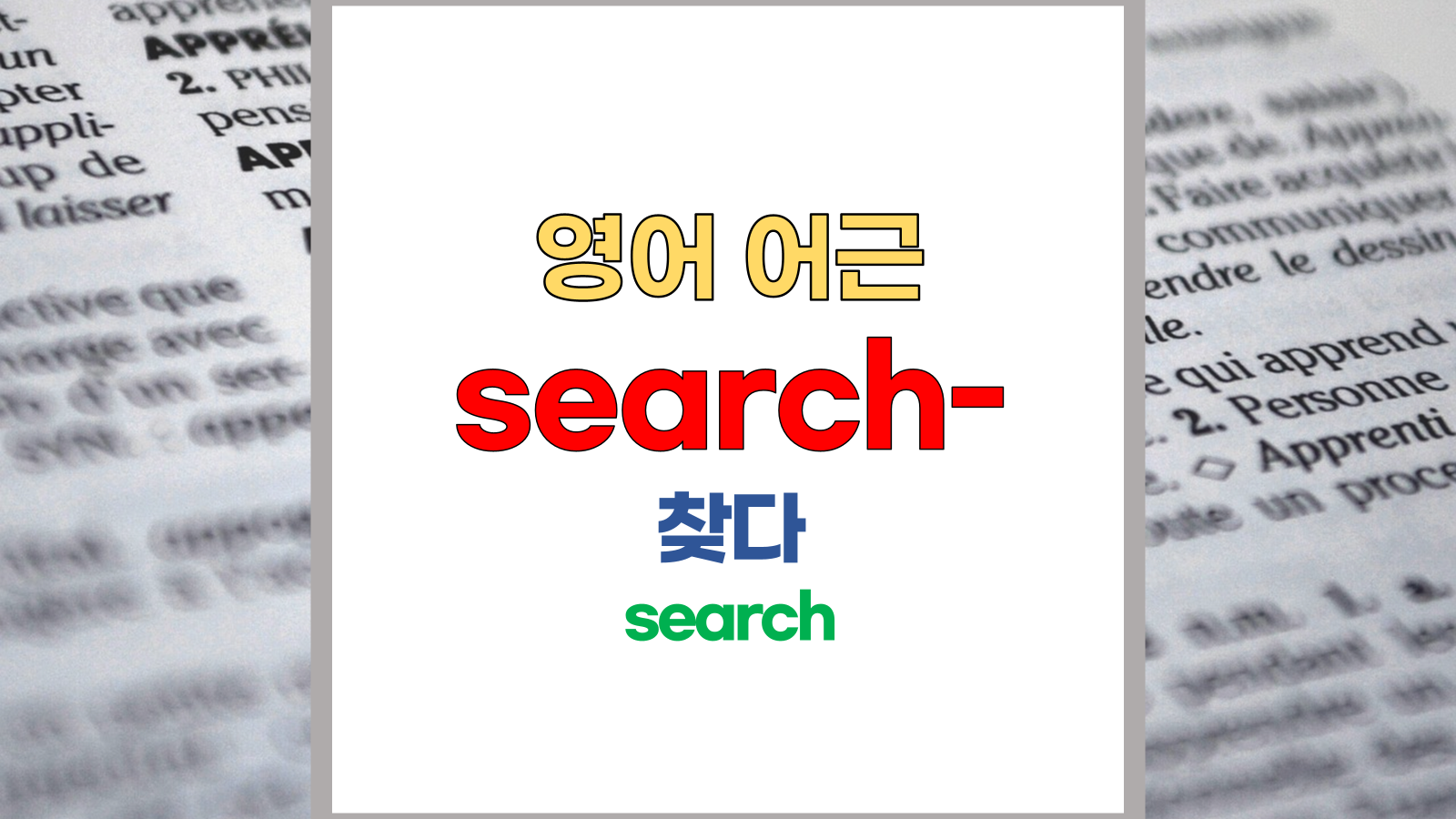 [어근] ⑴ re; intensive ⑵ search; 찾다, search