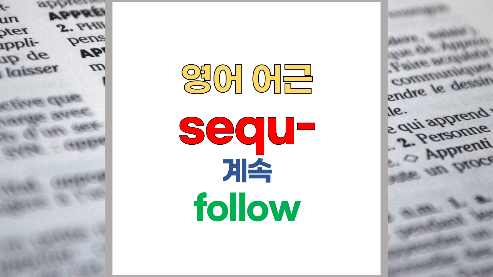 | 영어 어근 sequ는 라틴어(Latin) sequere, sequi, secutus에서 유래했습니다. 계속, follow라는 기본적인 의미를 갖고 있습니다. |