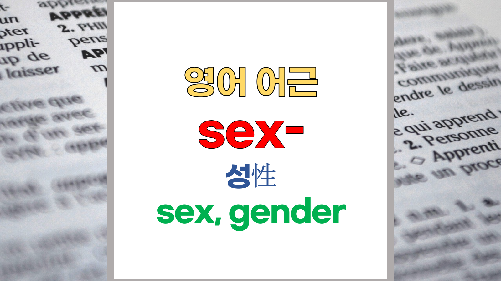| 영어 어근 sex는 라틴어(Latin) sexus에서 유래했습니다. 성(性), sex라는 기본적인 의미를 갖고 있습니다. |