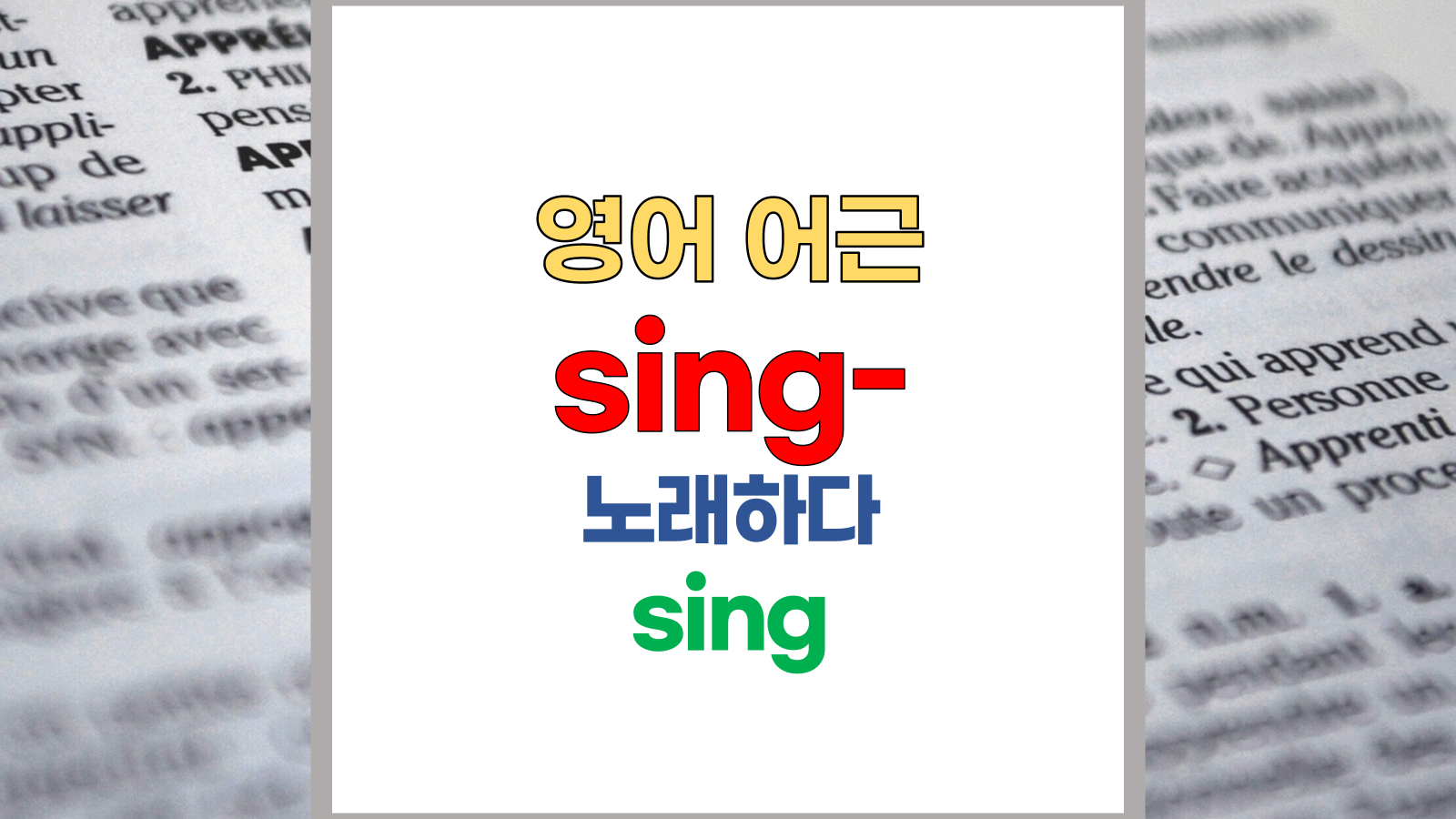 | 영어 어근 sing은 고대 영어(Old English) singan에서 유래했습니다. 노래하다, sing이라는 기본적인 의미를 갖고 있습니다. |