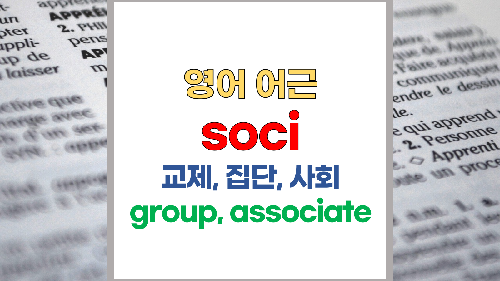 | 영어 어근 soci는 라틴어(Latin) socius, sociare, sociatus에서 유래했습니다. 교제, 집단, 사회, 교제하다, group, associate라는 기본적인 의미를 갖고 있습니다. |