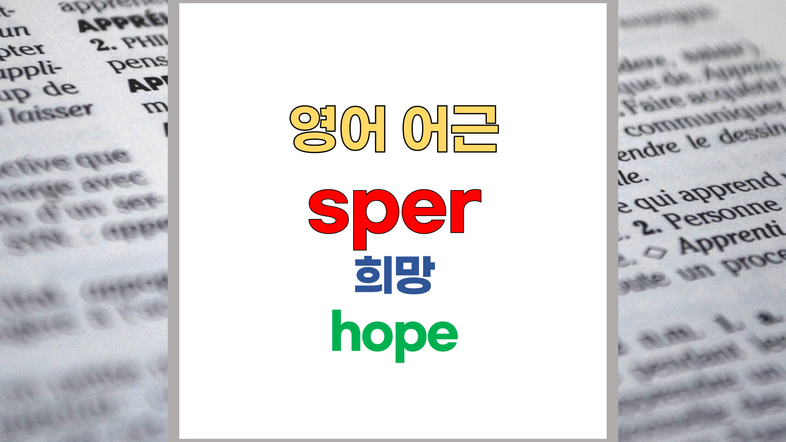 | 영어 어근 sper는 라틴어(Latin) sperare, spes에서 유래했습니다. 희망, hope라는 기본적인 의미를 갖고 있습니다. |