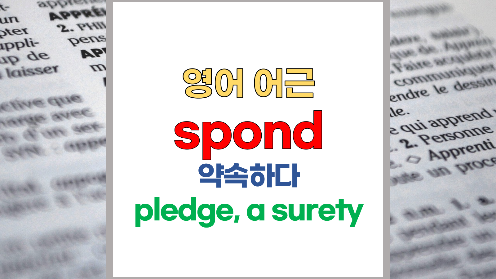 | 영어 어근 spond는 라틴어(Latin) spondere, sponsus에서 유래했습니다. 약속하다, pledge, a surety, guarantee; give assurance, promise solemnly라는 기본적인 의미를 갖고 있습니다. |