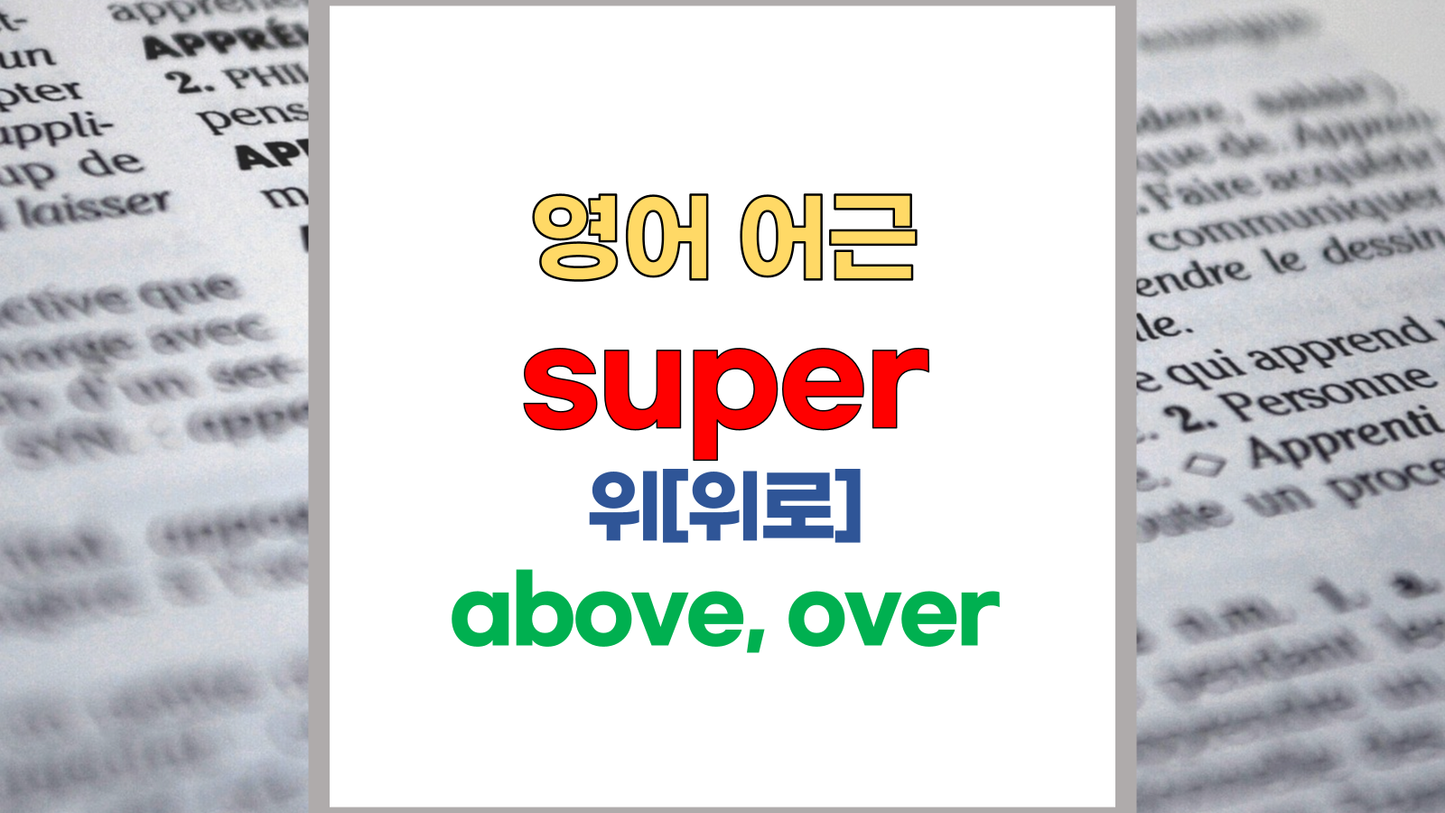 | 영어 어근 super-는 라틴어(Latin) super에서 유래했습니다. 위, over, beyond, above라는 기본적인 의미를 갖고 있습니다. |