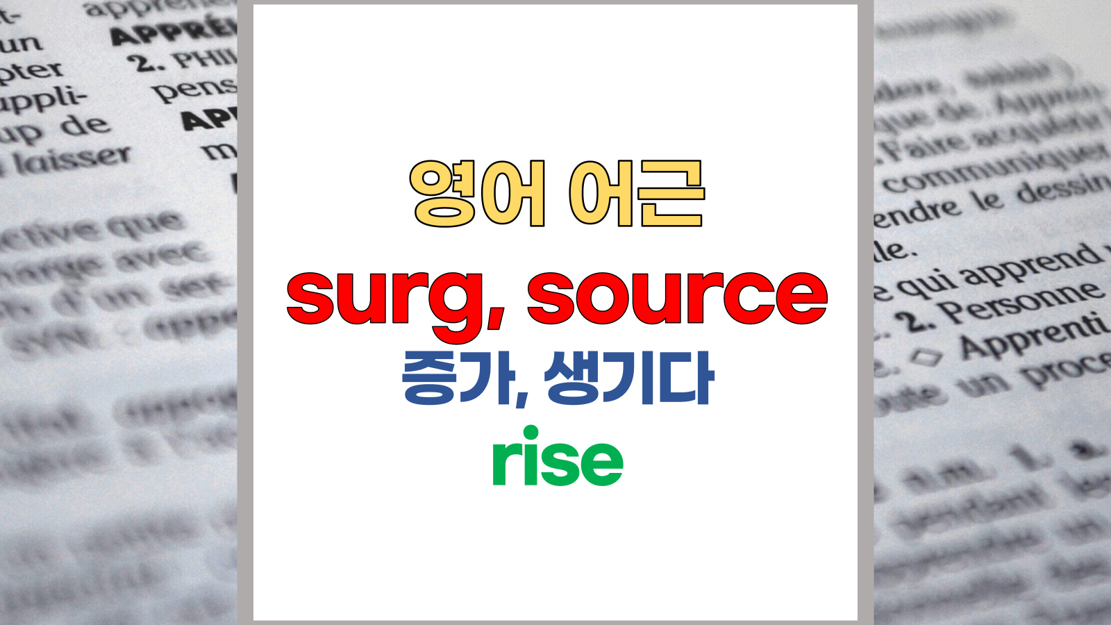 | 영어 어근 surg는 라틴어(Latin) surgere, surrigere에서 유래했습니다. 증가, rise라는 기본적인 의미를 갖고 있습니다. |