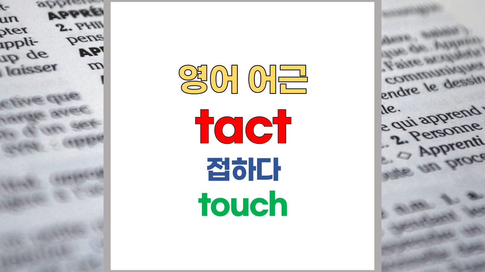 | 영어 어근 tact-, tax-는 라틴어(Latin) tactus, taxare, tangere에서 유래했습니다. 접하다, touch라는 기본적인 의미를 갖고 있습니다. |