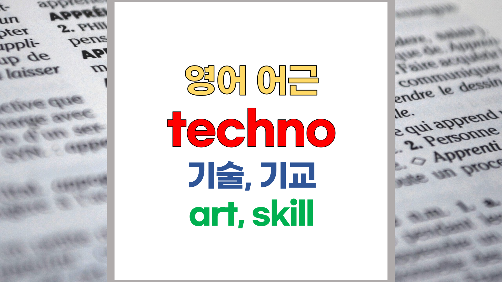 [어근] ⑴ techno; 기술, skill, 기교 ⑵ logy(log); 말, word, 학문