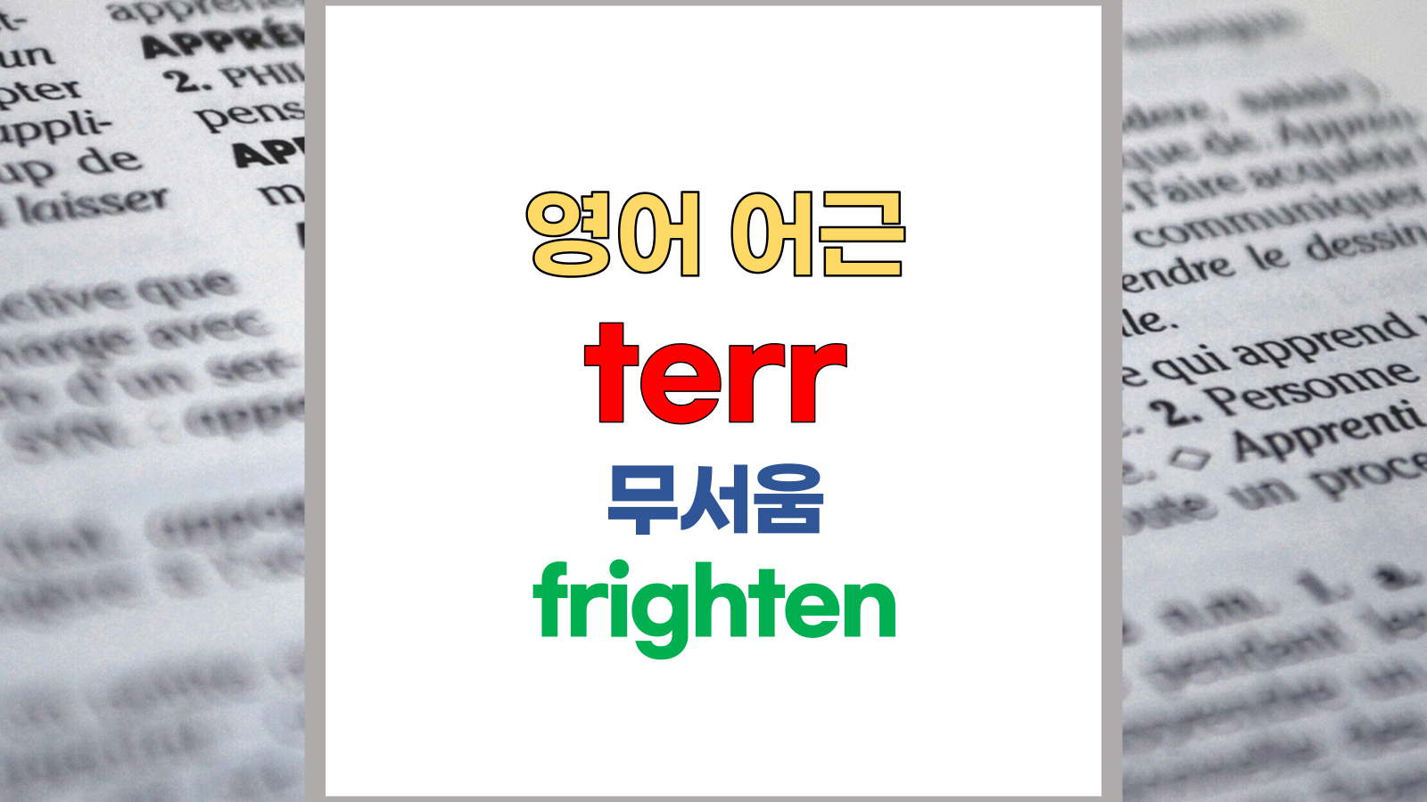 | 영어 어근 terr는 라틴어(Latin) terrorem, terror, terrere에서 유래했습니다. 무서움, frighten이라는 기본적인 의미를 갖고 있습니다. |