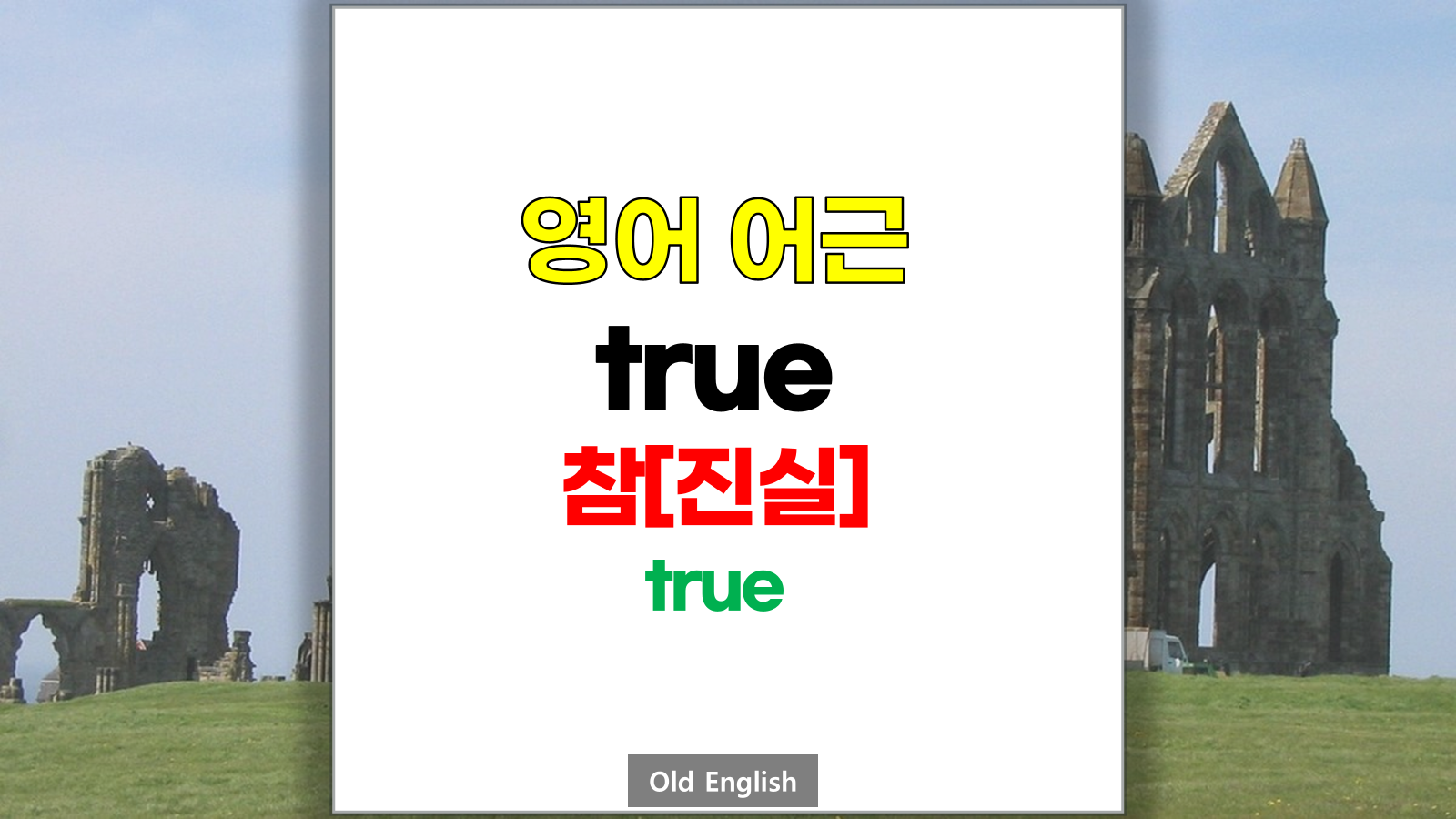 | 영어 어근 true는 고대 영어(Old English) triewe, treowe, trywe에서 유래했습니다. 참[진실], true라는 기본적인 의미를 갖고 있습니다. |