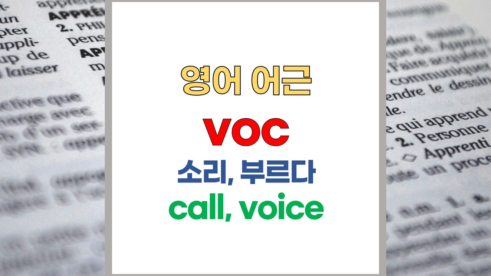 | 영어 어근 voc는 라틴어(Latin) vocare, vox, vocis, vocalis에서 유래했습니다. 소리, 부르다, 소리내다, voice, call이라는 기본적인 의미를 갖고 있습니다. |