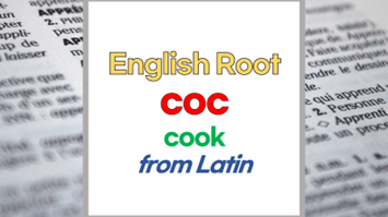 | 영어 어근 coc는 라틴어(Latin) cocus, coquus, coquere, coquinus, cocina, coquina, culina에서 유래했습니다. 요리하다, cook이라는 기본적인 의미를 갖고 있습니다. |