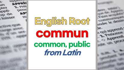 | 영어 어근 commun-, comun-은 라틴어(Latin) communis에서 유래했습니다. 보통의, 공공의, common, public, general이라는 기본적인 의미를 갖고 있습니다. |