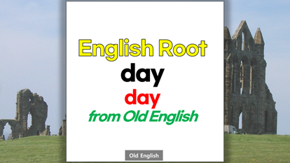 | 영어 어근 day는 고대 영어(Old English) dæg에서 유래했습니다. 하루, day라는 기본적인 의미를 갖고 있습니다. |